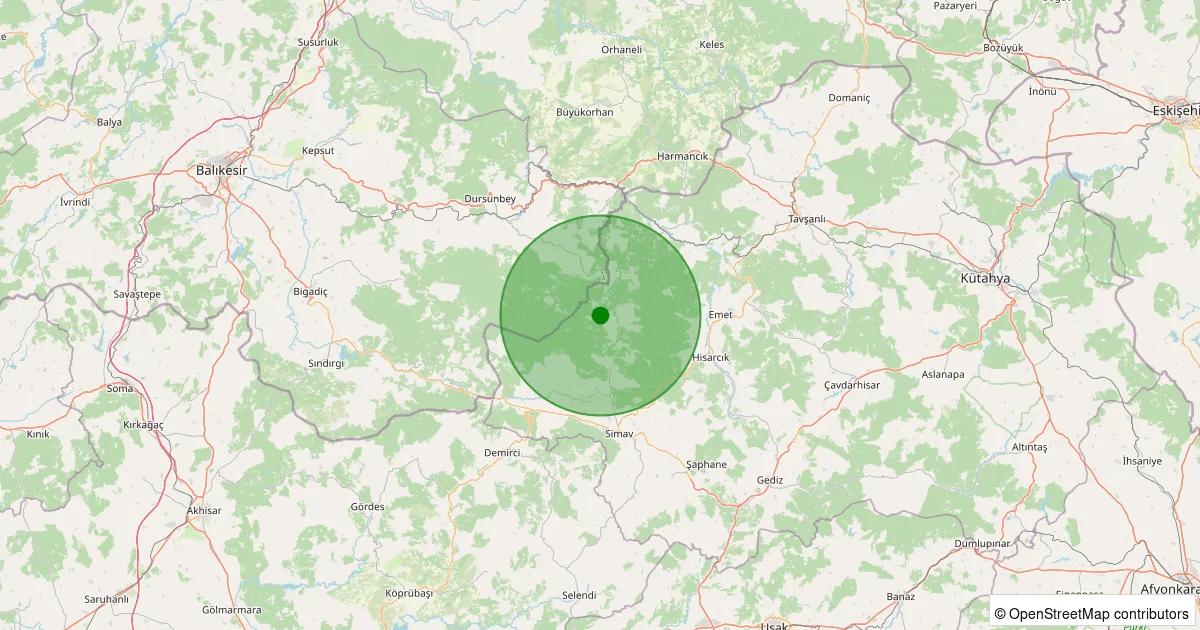 Son 7 gün içinde Simav - Hasanören Köyü noktasından 100 km yarıçap içerisinde meydana gelen diğer depremler:
