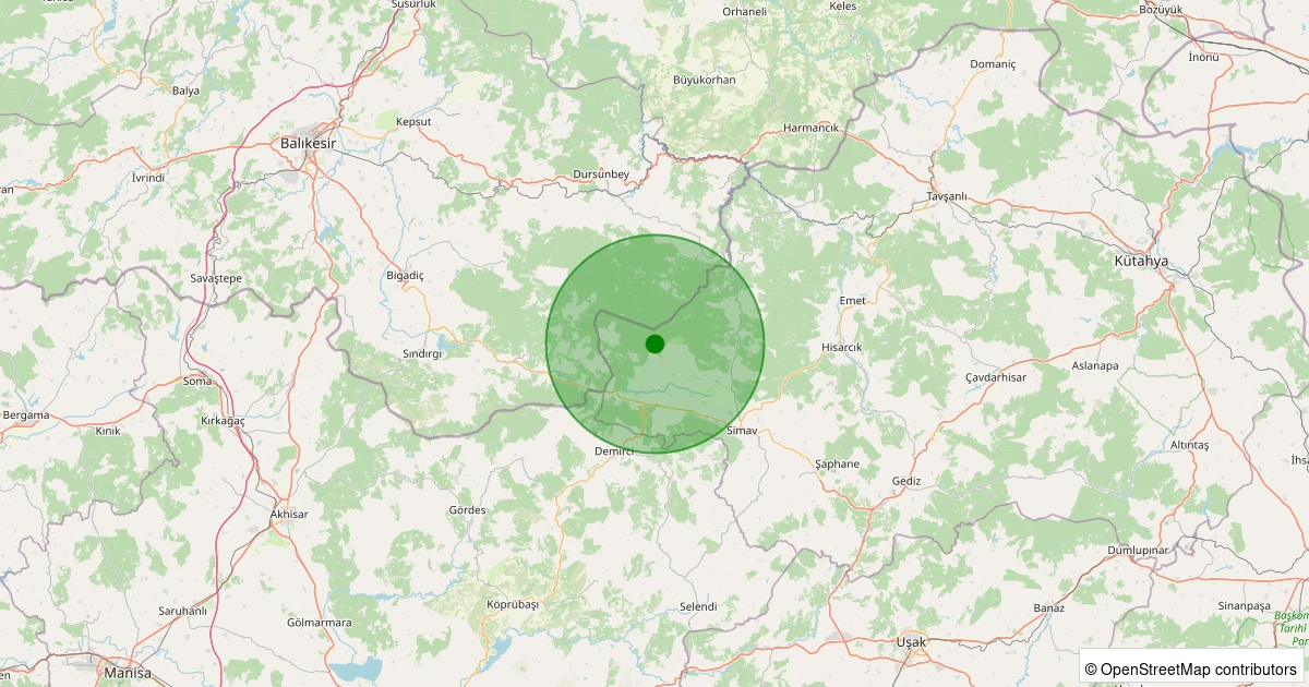 Son 7 gün içinde Simav - Kiçir Köyü noktasından 100 km yarıçap içerisinde meydana gelen diğer depremler: