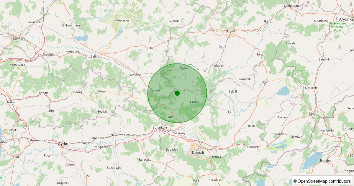 Son 7 gün içinde Buldan - Karaköy noktasından 100 km yarıçap içerisinde meydana gelen diğer depremler: