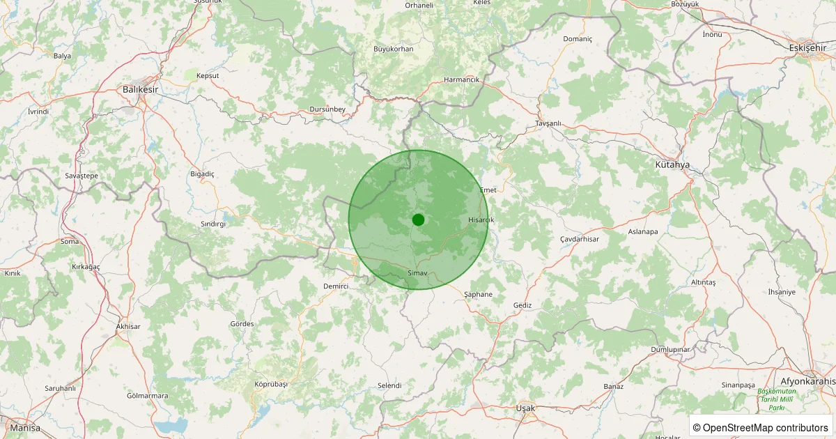 Son 7 gün içinde Simav - Maden Köyü noktasından 100 km yarıçap içerisinde meydana gelen diğer depremler:
