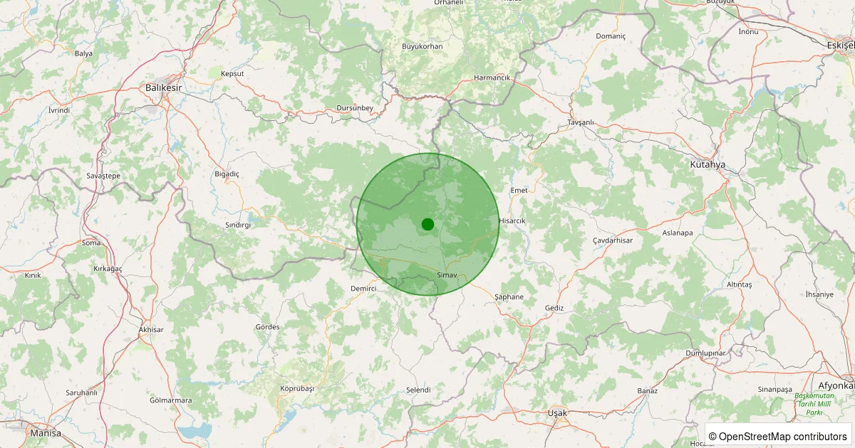 Son 7 gün içinde Simav - Kayalıdere Köyü noktasından 100 km yarıçap içerisinde meydana gelen diğer depremler: