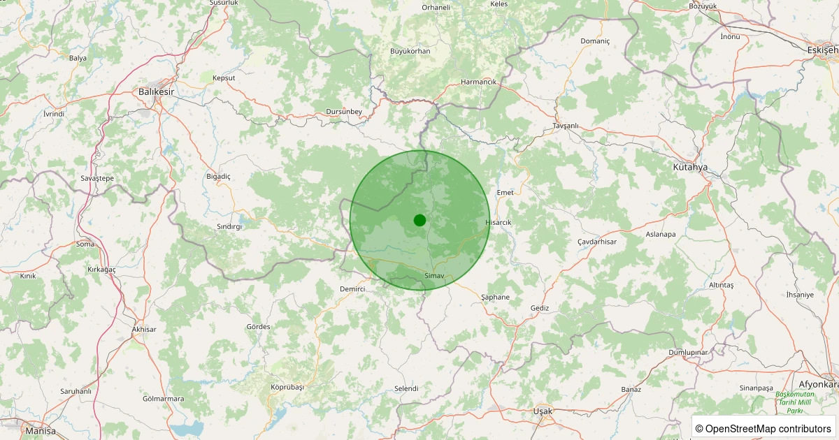 Son 7 gün içinde Simav - Yeniler Köyü noktasından 100 km yarıçap içerisinde meydana gelen diğer depremler: