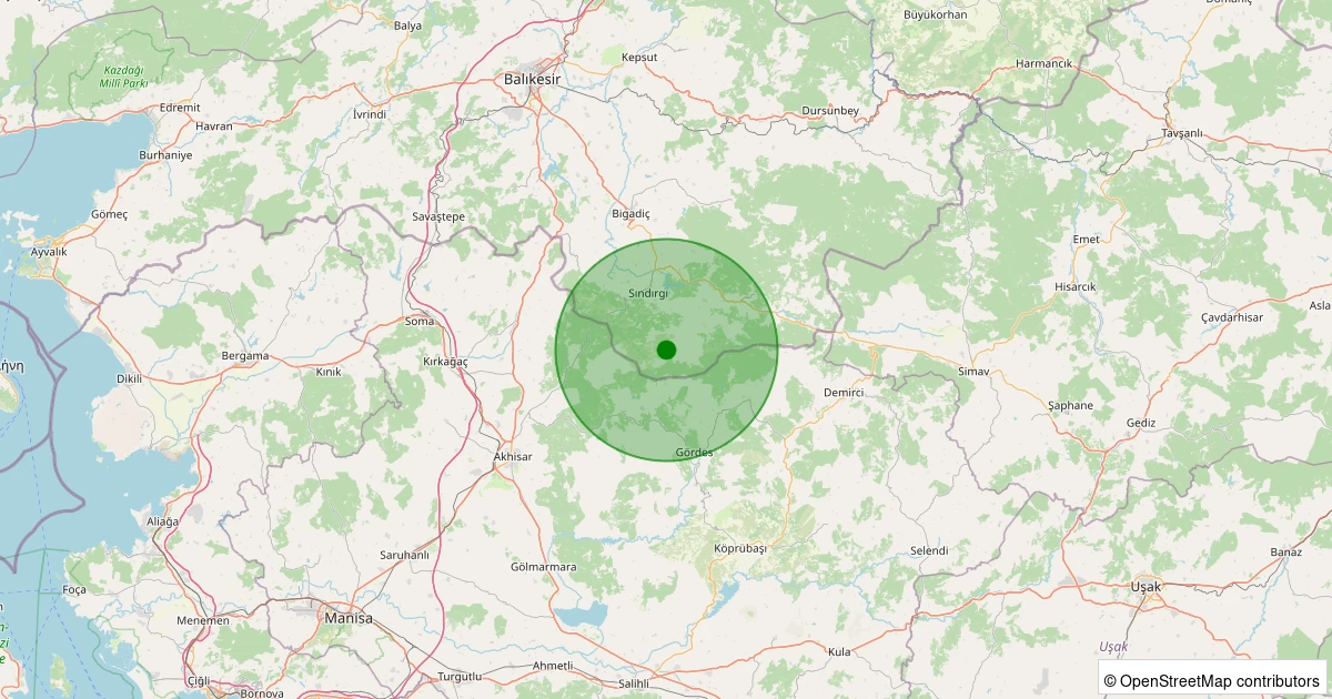Son 7 gün içinde Sındırgı - Kınık noktasından 100 km yarıçap içerisinde meydana gelen diğer depremler: