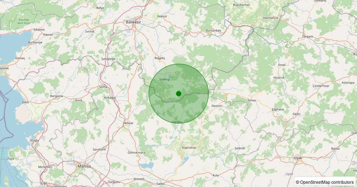 Son 7 gün içinde Sındırgı - Yüreğil/Merkez noktasından 100 km yarıçap içerisinde meydana gelen diğer depremler: