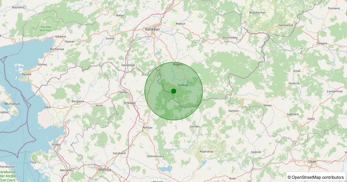 Son 7 gün içinde Sındırgı - Kertil noktasından 100 km yarıçap içerisinde meydana gelen diğer depremler: