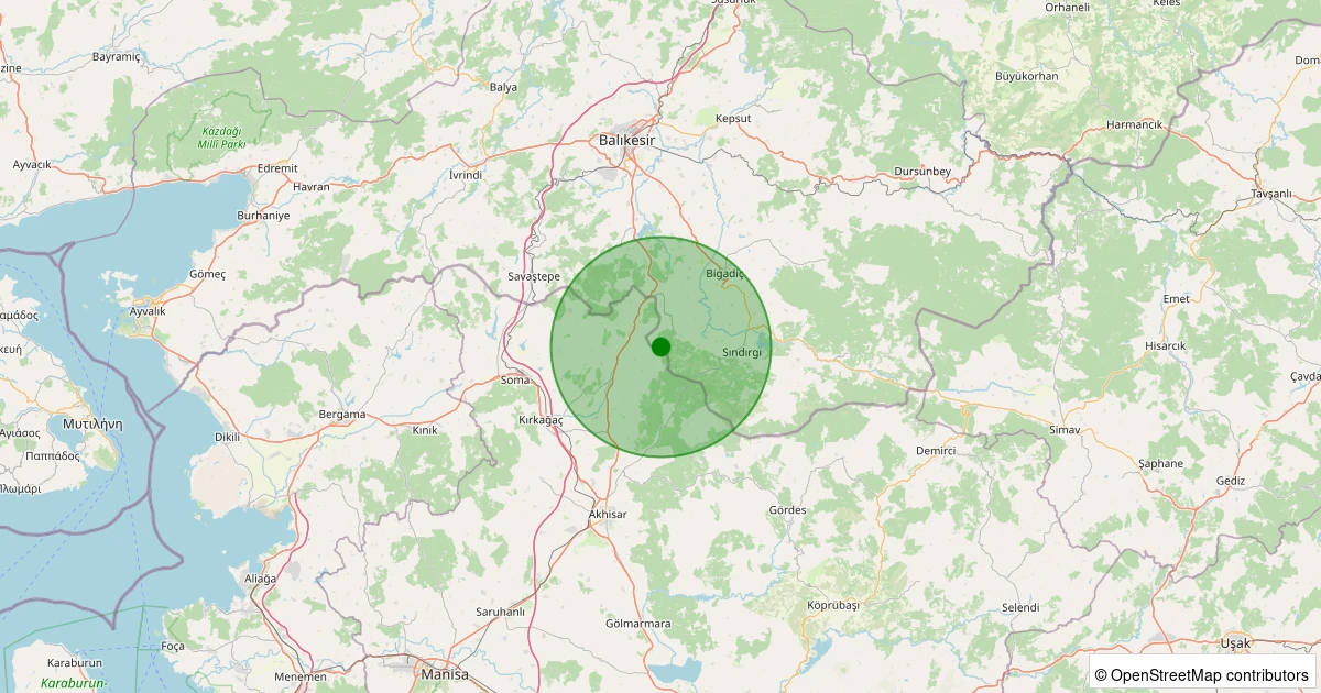 Son 7 gün içinde Sındırgı - Eğridere noktasından 100 km yarıçap içerisinde meydana gelen diğer depremler: