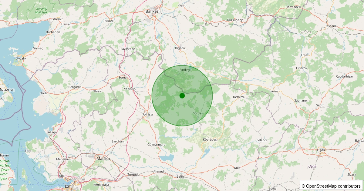 Son 7 gün içinde Akhisar - Hanpaşa Köyü noktasından 100 km yarıçap içerisinde meydana gelen diğer depremler: