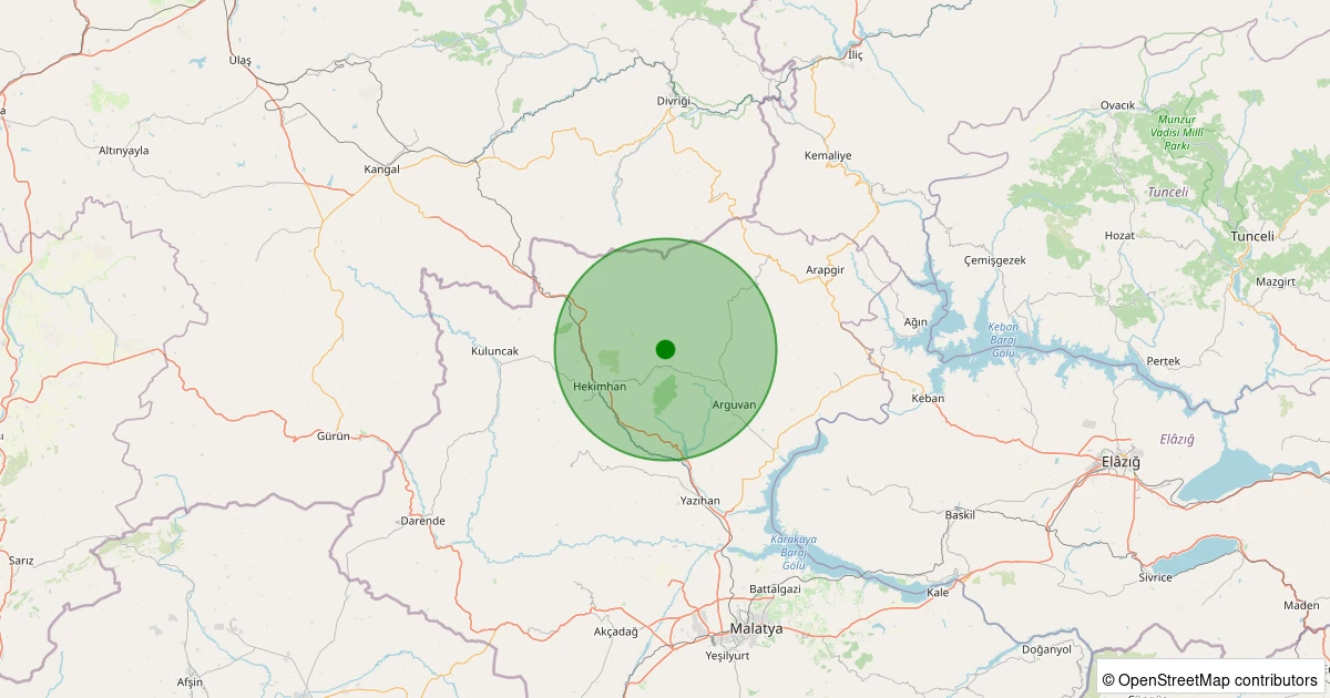 Son 7 gün içinde Hekimhan - İğdir Köyü noktasından 100 km yarıçap içerisinde meydana gelen diğer depremler: