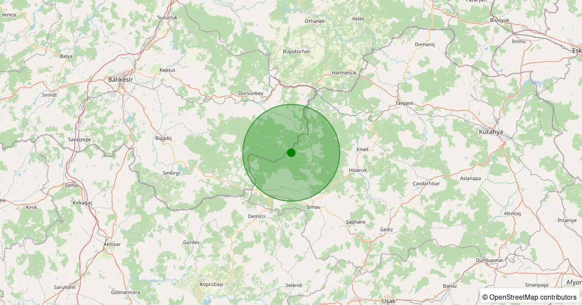 Son 7 gün içinde Simav - Ortacı Köyü noktasından 100 km yarıçap içerisinde meydana gelen diğer depremler: