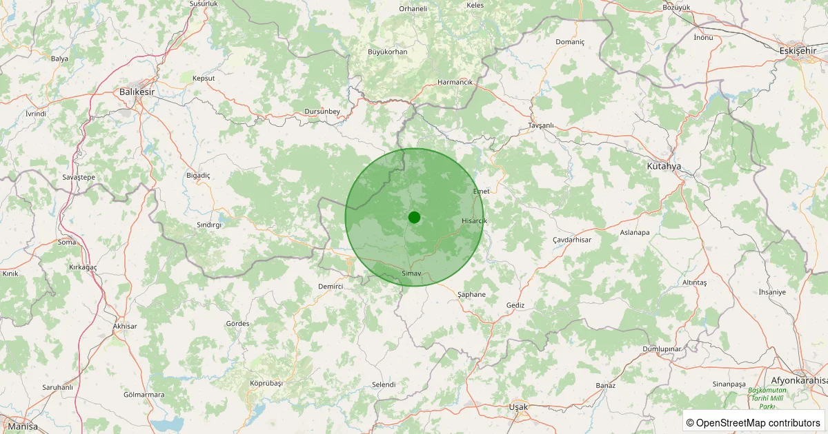 Son 7 gün içinde Simav - Yeşildere Köyü noktasından 100 km yarıçap içerisinde meydana gelen diğer depremler: