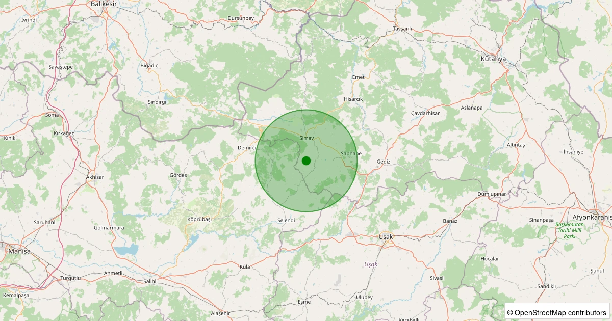 Son 7 gün içinde Simav - Hıdırdivanı Köyü noktasından 100 km yarıçap içerisinde meydana gelen diğer depremler: