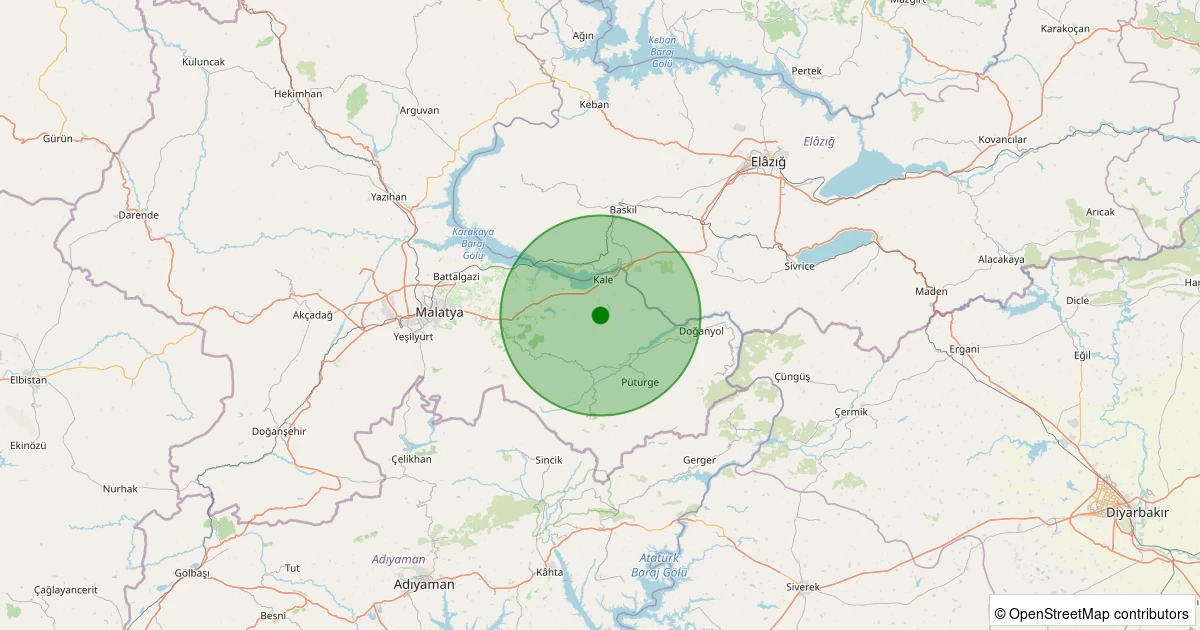 Son bir hafta içerisinde Malatya şehri Kale - Çanakçı Köyü noktasından 100 km yarıçap içerisinde toplamda 385 deprem kaydedilmiştir. Bu depremlerden en büyüğü 2.9 büyüklüğünde ve en sığ odaklısı 0.00 kilometre derinlikte gerçekleşmiştir.