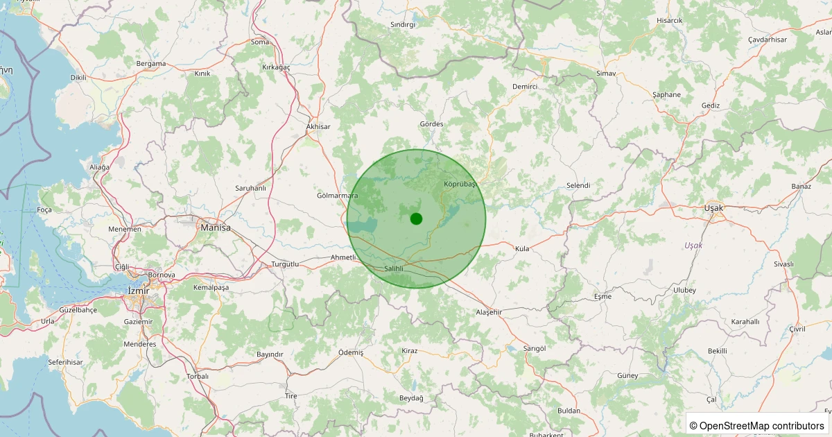 Son 7 gün içinde Salihli - Gökçeköy noktasından 100 km yarıçap içerisinde meydana gelen diğer depremler: