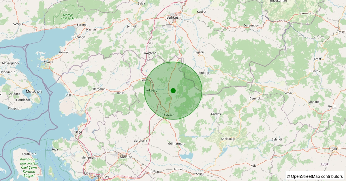 Son 7 gün içinde Kırkağaç - Alıfakı noktasından 100 km yarıçap içerisinde meydana gelen diğer depremler: