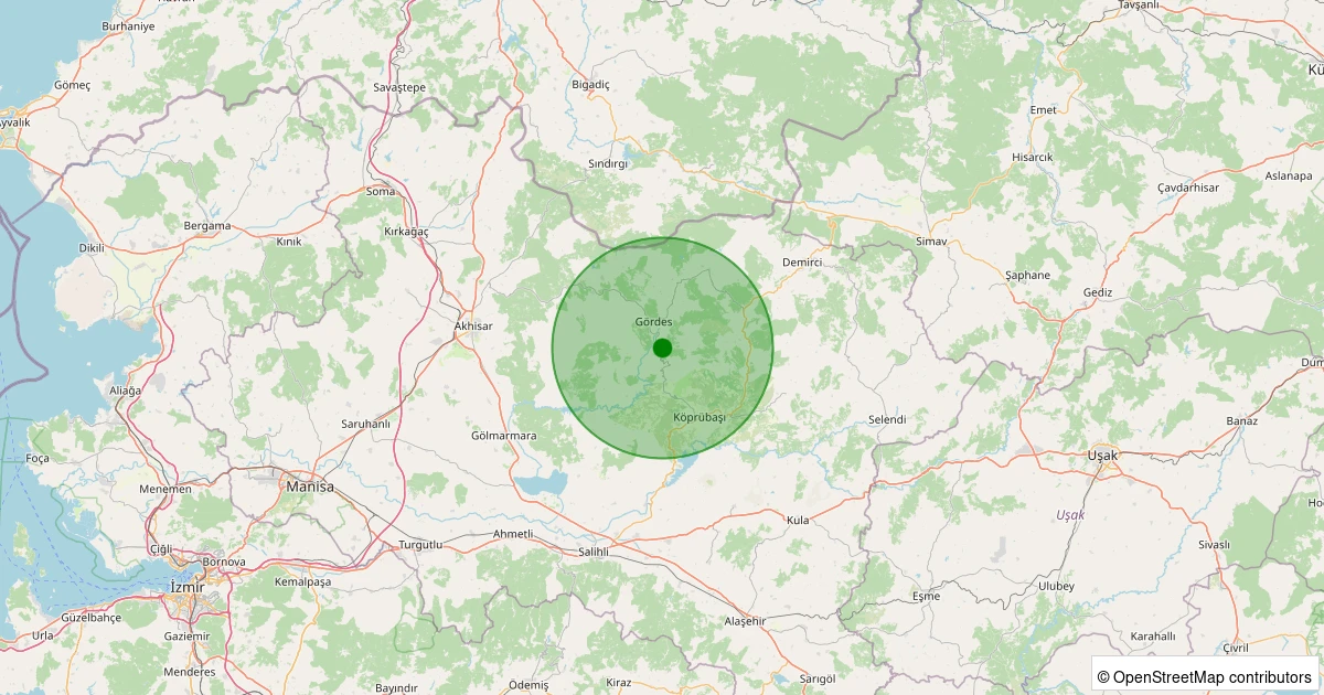 Son 7 gün içinde Gördes - Kurtuluş noktasından 100 km yarıçap içerisinde meydana gelen diğer depremler: