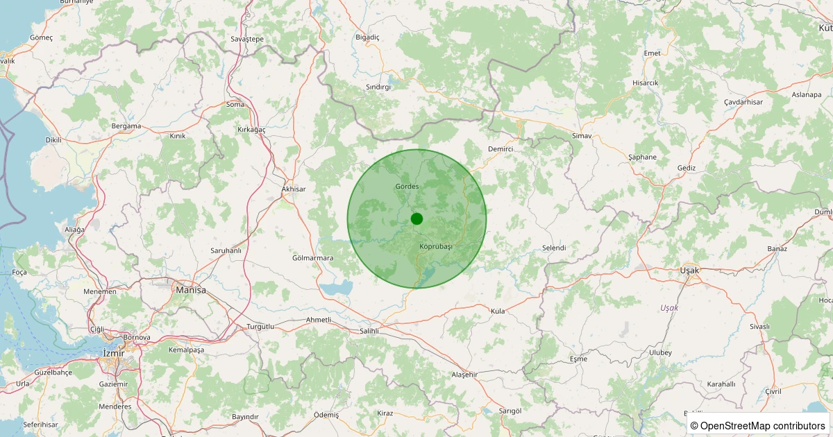 Son 7 gün içinde Gördes - Kıymık noktasından 100 km yarıçap içerisinde meydana gelen diğer depremler: