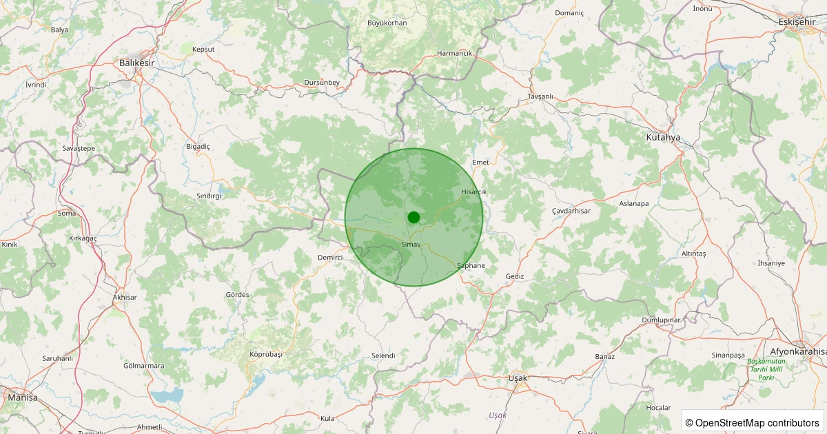 Son 7 gün içinde Simav - Naşa/Fatih noktasından 100 km yarıçap içerisinde meydana gelen diğer depremler: