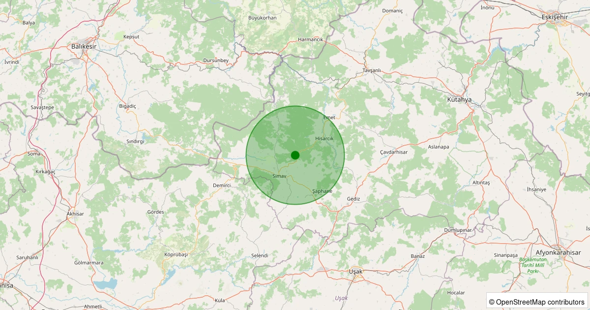 Son 7 gün içinde Simav - Söğüt Köyü noktasından 100 km yarıçap içerisinde meydana gelen diğer depremler:
