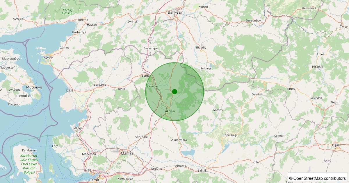 Son 7 gün içinde Akhisar - Selçikli Köyü noktasından 100 km yarıçap içerisinde meydana gelen diğer depremler: