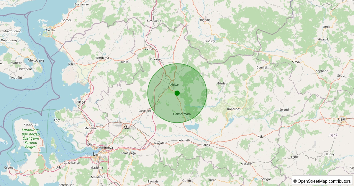 Son 7 gün içinde Akhisar - Kızlaralanı Köyü noktasından 100 km yarıçap içerisinde meydana gelen diğer depremler: