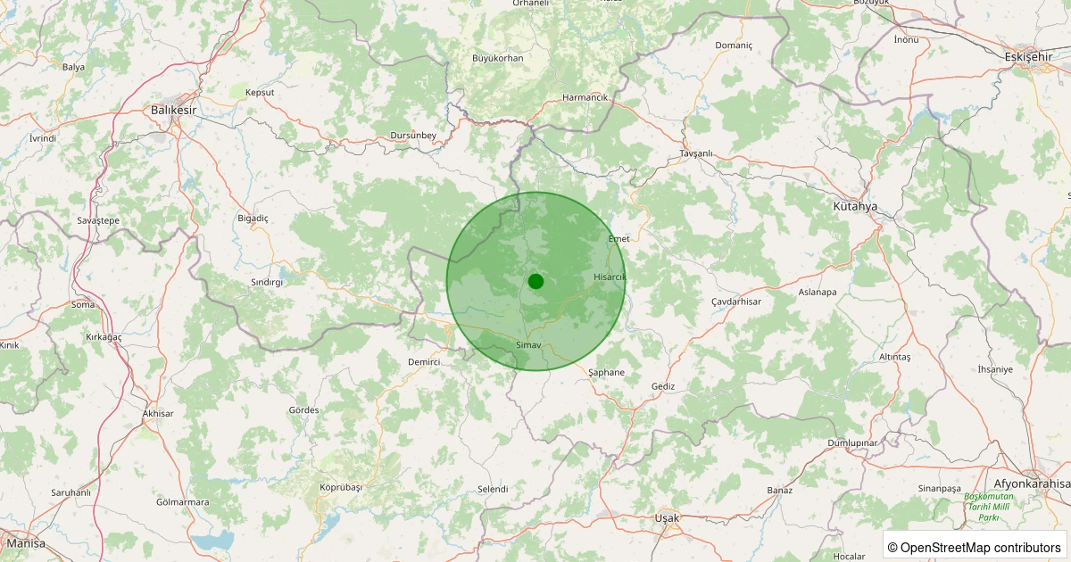 Son 7 gün içinde Simav - Yemişli Köyü noktasından 100 km yarıçap içerisinde meydana gelen diğer depremler: