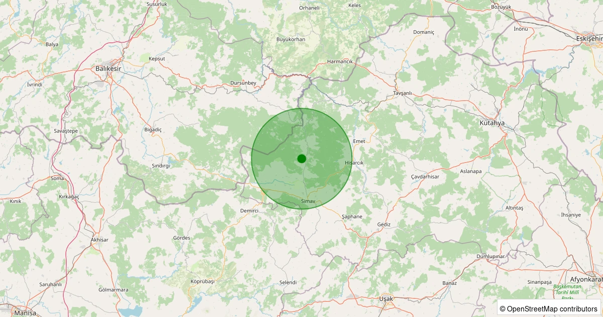 Son 7 gün içinde Simav - Karakoca Köyü noktasından 100 km yarıçap içerisinde meydana gelen diğer depremler: