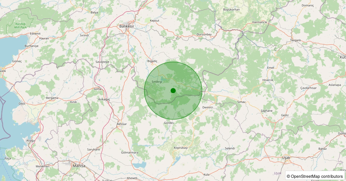 Son 7 gün içinde Sındırgı - Büyükdağdere noktasından 100 km yarıçap içerisinde meydana gelen diğer depremler: