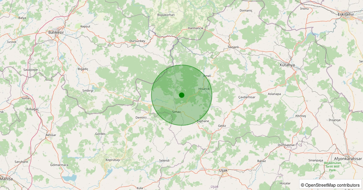 Son 7 gün içinde Simav - Yemişli Köyü noktasından 100 km yarıçap içerisinde meydana gelen diğer depremler: