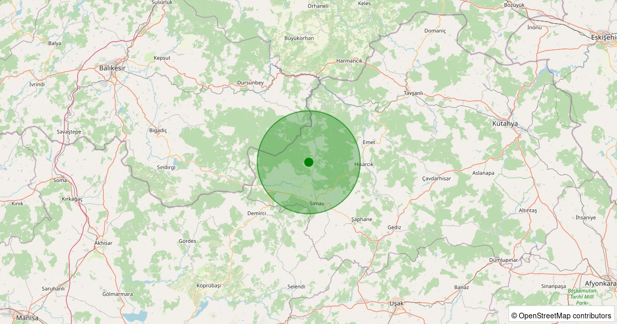 Son 7 gün içinde Simav - Karakoca Köyü noktasından 100 km yarıçap içerisinde meydana gelen diğer depremler: