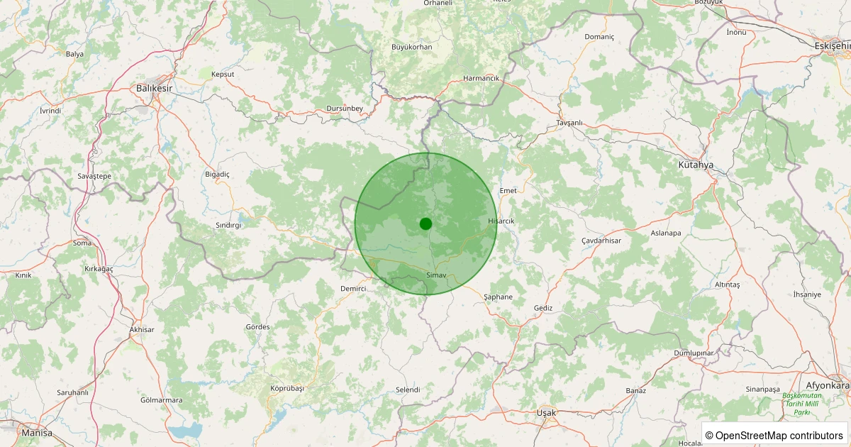 Son 7 gün içinde Simav - Yeniler Köyü noktasından 100 km yarıçap içerisinde meydana gelen diğer depremler: