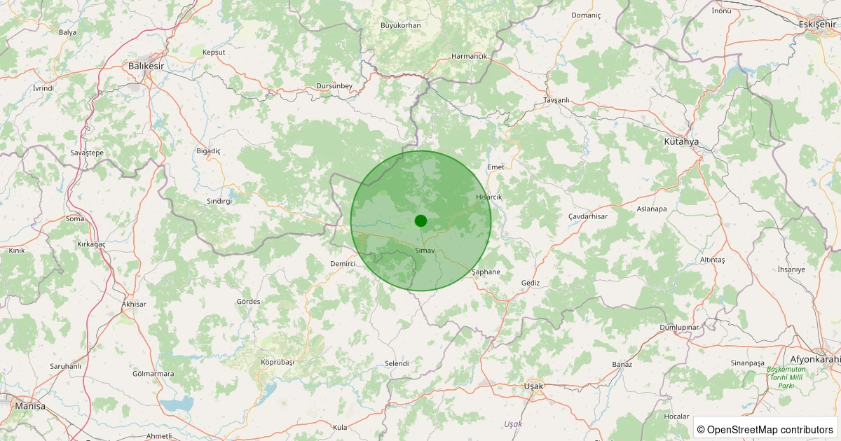 Son 7 gün içinde Simav - Naşa/Fatih noktasından 100 km yarıçap içerisinde meydana gelen diğer depremler: