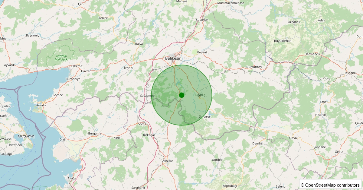 Son 7 gün içinde Bigadiç - Çayüstü noktasından 100 km yarıçap içerisinde meydana gelen diğer depremler: