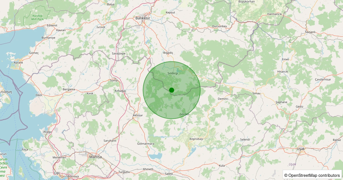 Son 7 gün içinde Sındırgı - Kınık noktasından 100 km yarıçap içerisinde meydana gelen diğer depremler: