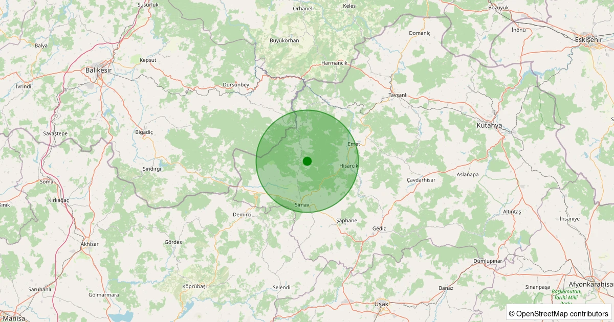 AFAD üzerinden alınan ölçümlere göre Simav - Yeşildere Köyü bölgesinde 12.11.2025 18:38 tarihinde gece saatlerinde 0.8 büyüklüğünde bir deprem meydana geldi.