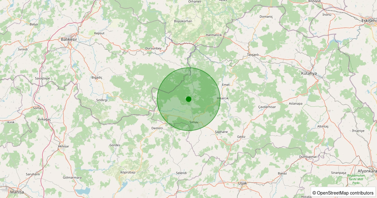 Son 7 gün içinde Simav - Yeniler Köyü noktasından 100 km yarıçap içerisinde meydana gelen diğer depremler: