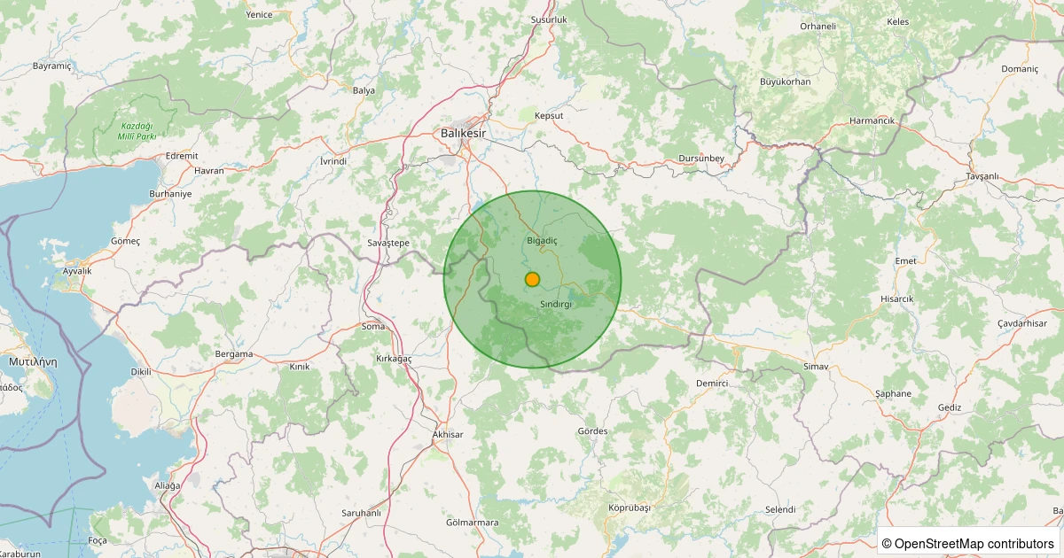 Son 7 gün içinde Sındırgı noktasından 100 km yarıçap içerisinde meydana gelen diğer depremler: