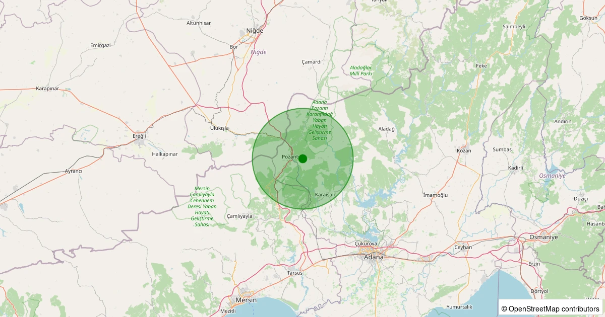 Son 7 gün içinde Pozantı - Gökbez noktasından 100 km yarıçap içerisinde meydana gelen diğer depremler: