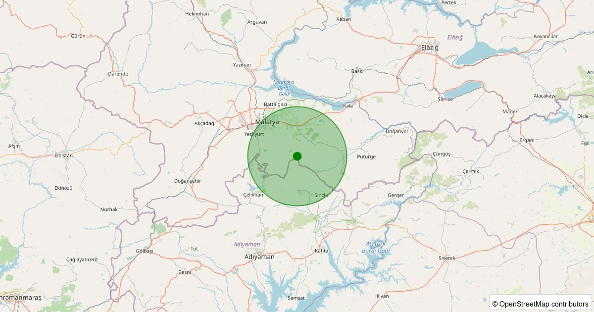 Son 7 gün içinde Battalgazi - Uluköy Köyü noktasından 100 km yarıçap içerisinde meydana gelen diğer depremler: