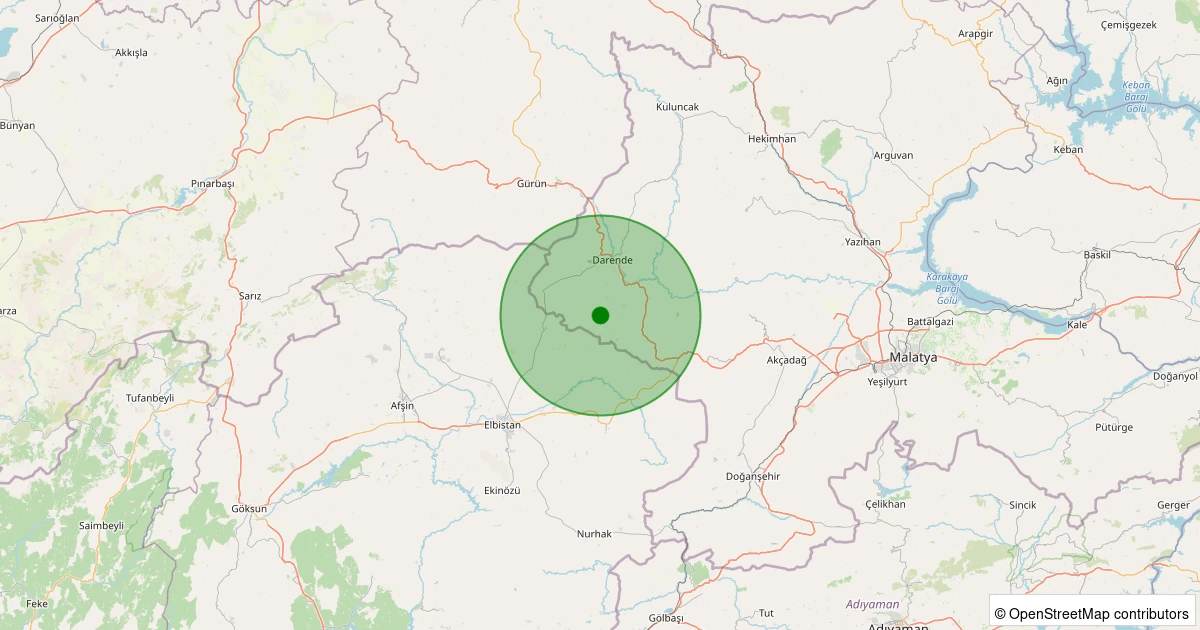 Son 7 gün içinde Darende - Yavuzlar noktasından 100 km yarıçap içerisinde meydana gelen diğer depremler: