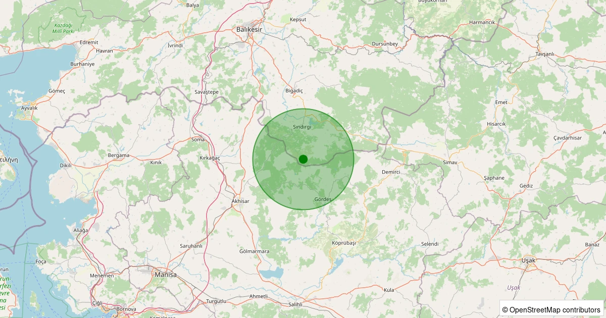 Son 7 gün içinde Sındırgı - Kınık noktasından 100 km yarıçap içerisinde meydana gelen diğer depremler: