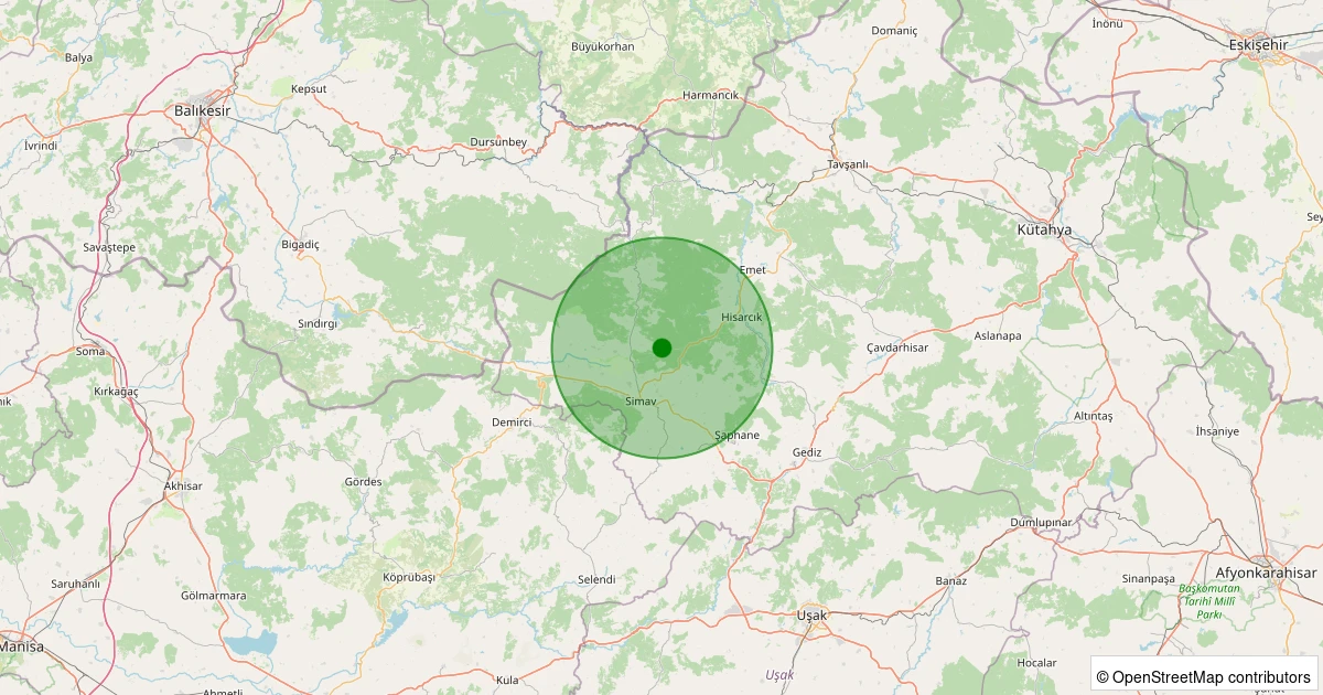 Son 7 gün içinde Simav - Eğirler Köyü noktasından 100 km yarıçap içerisinde meydana gelen diğer depremler: