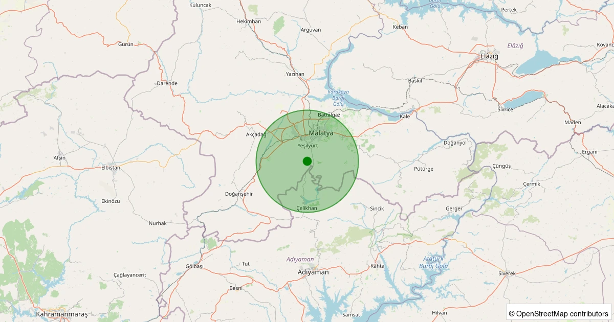 Son 7 gün içinde Yeşilyurt - Kadiruşağı noktasından 100 km yarıçap içerisinde meydana gelen diğer depremler: