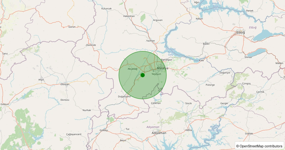 Son 7 gün içinde Akçadağ - Karapınar noktasından 100 km yarıçap içerisinde meydana gelen diğer depremler: