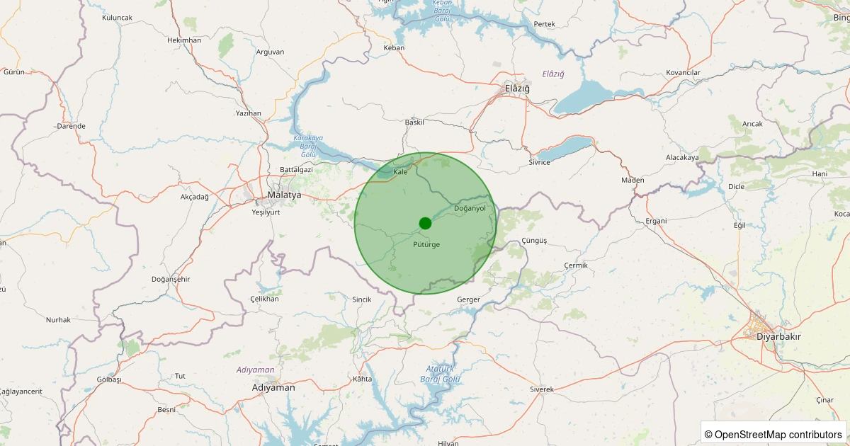 Son 7 gün içinde Pütürge - Çengelli Köyü noktasından 100 km yarıçap içerisinde meydana gelen diğer depremler: