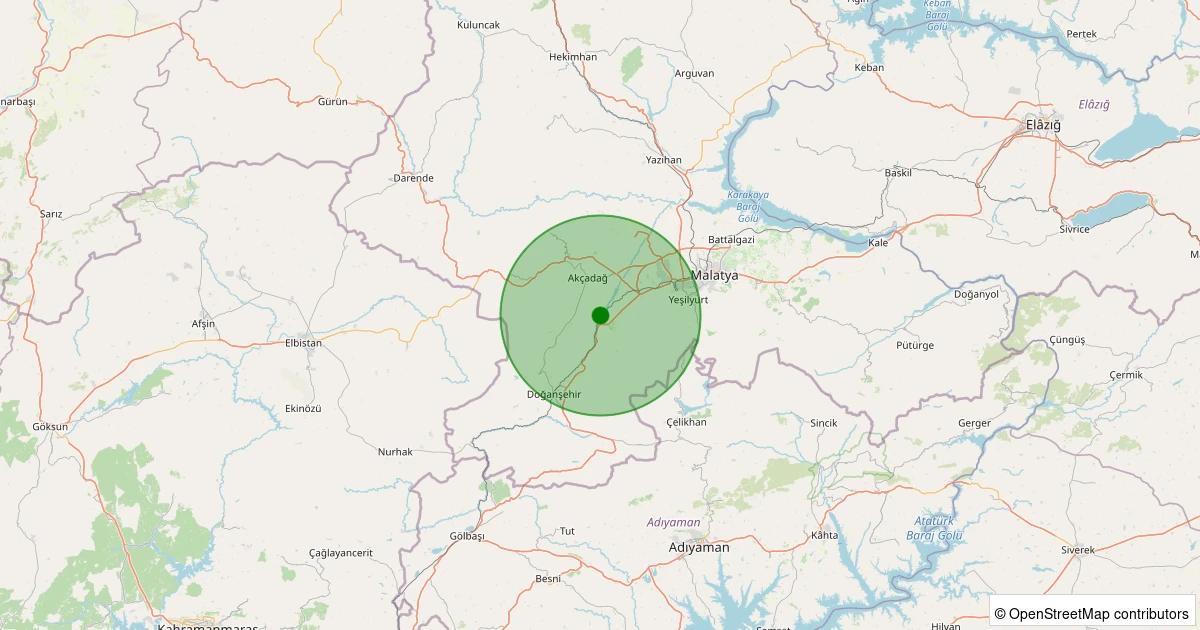 Son 7 gün içinde Akçadağ - Kümekavak noktasından 100 km yarıçap içerisinde meydana gelen diğer depremler: