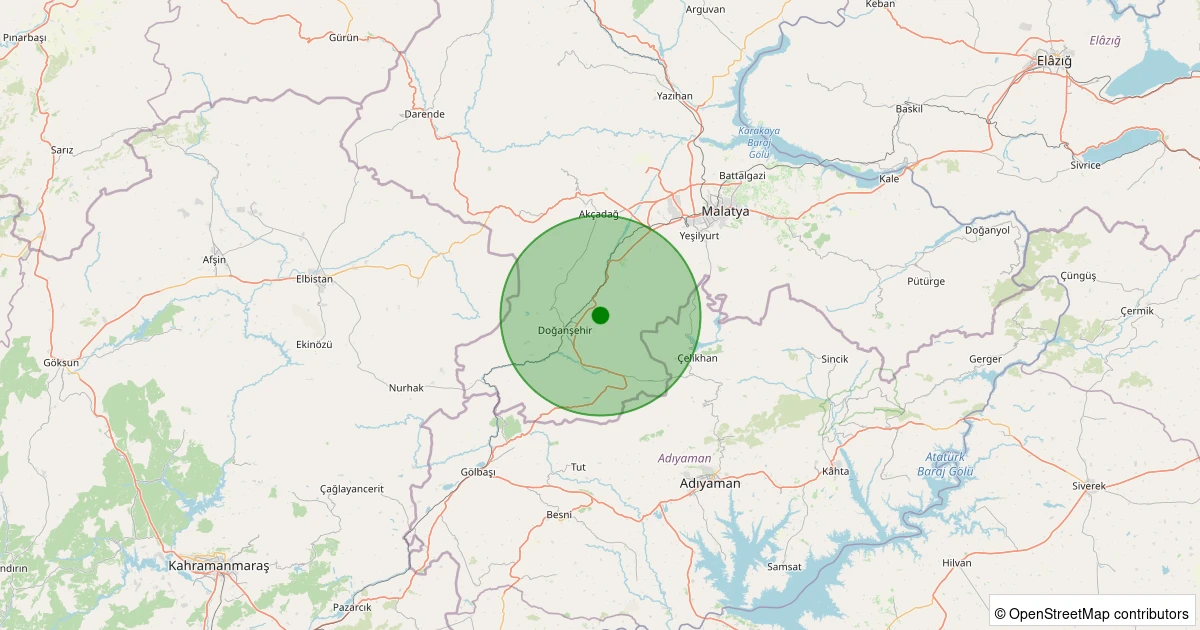 Son 7 gün içinde Akçadağ - Ortaköy noktasından 100 km yarıçap içerisinde meydana gelen diğer depremler: