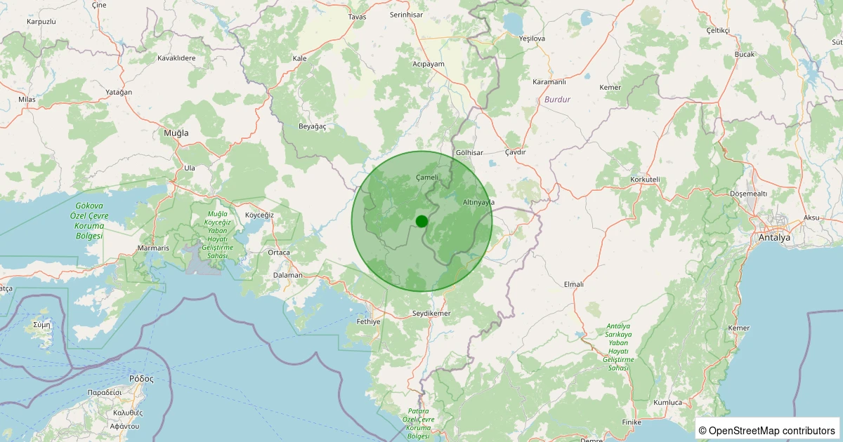 Son 7 gün içinde Çameli - Gürsu noktasından 100 km yarıçap içerisinde meydana gelen diğer depremler: