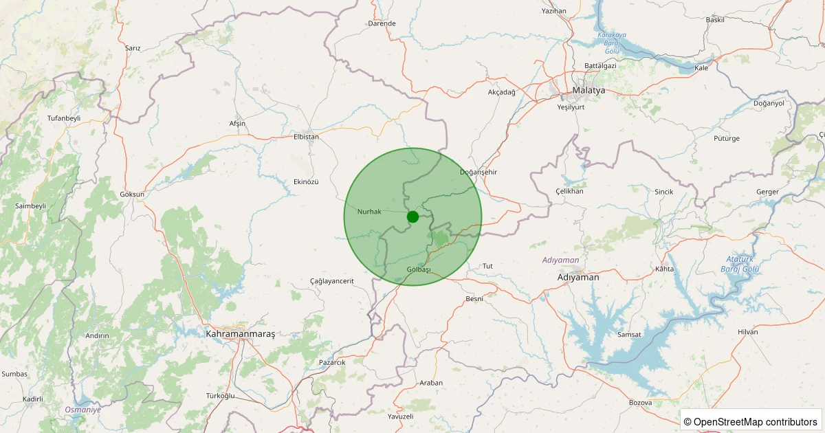 Son 7 gün içinde Doğanşehir - Bıçakçı noktasından 100 km yarıçap içerisinde meydana gelen diğer depremler: