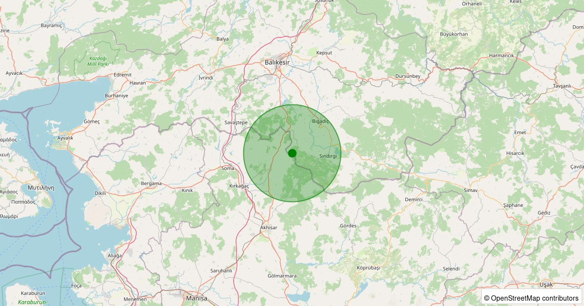 Son 7 gün içinde Sındırgı - Eğridere noktasından 100 km yarıçap içerisinde meydana gelen diğer depremler: