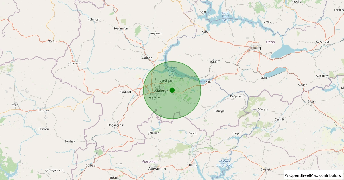 Son 7 gün içinde Battalgazi - Bulguru Köyü noktasından 100 km yarıçap içerisinde meydana gelen diğer depremler: